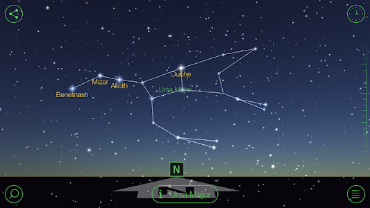 A scale on right is the Time Machine, slide it to explore the map of the night sky of tomorrow or years ago.