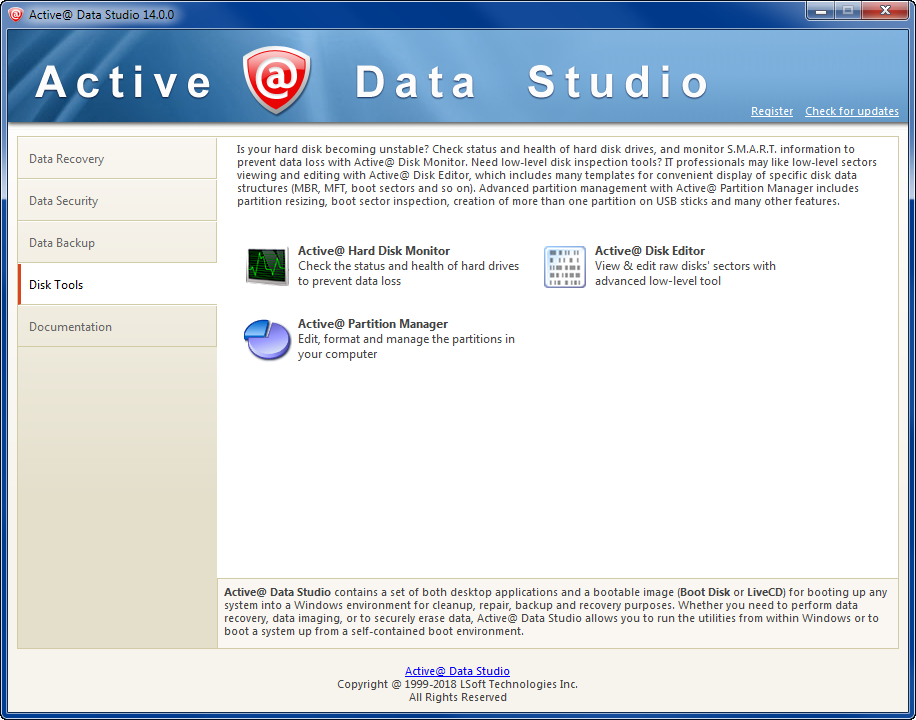 - [email protected] Recovery - narzędzie do przywracania usuniętych lub uszkodzonych danych. Mmoże tworzyć obrazy dysków do transferu danych na inne HDD lub kopii zapasowej.