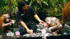 Повествование фильма локализовано в двух точках - тропических лесах Борнео, где приматолог, доктор Бируте Мария Галдикас создала приют для орангутангов, потерявших своих матерей, и в кенийской саванне, где доктор Дафни Шелдрик и ее помощники спасают от вымирания слонов. Подробный рассказ о том, как животные учатся доверять человеку, как они снова начинают любить жизнь, разрушенную браконьерами, смотрится трогательнее, чем любая мелодрама. Навсегда запомнятся трогательные кадры, как слоны играют со своими друзьями-людьми в футбол, а орангутанги под колыбельную засыпают в обнимку с человеческими приемными матерями. Как и любые живые существа, слоны и орангутанги не могут жить, если они несчастны, и тут не поможет вкусная еда. Главная задача работников приютов - подарить им тепло и научить их жить в дикой природе, потому что придет время, когда все выпускники реабилитационных центров вернутся на волю. Главная интонация в фильме: автор хочет показать, что животные умеют бескорыстно любить и никогда не предадут, что, наверное, выгодно отличает их от людей.