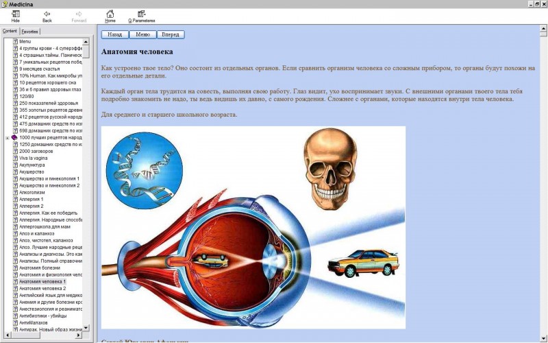 Название : Подборка медицинской литературы Год : 2018 Тематика : Медицина, Здоровье Количество книг : 300 Язык : Русский Формат : CHM Описание: Это подборка медицинской литературы, которая включает в себя более 900 книг. В этой подборке собраны книги по здравоохранению, анатомии, различные полезные советы, касающиеся медицины, рецепты народной медицины, фармокологические справочники и. т.д. Список книг10% Human. Как микробы управляют людьми - Мясников Александр 120/80 - Коллен Аланна 1250 домашних средств по излечению всевозможных болезней - Лоевский Феликс 250 показателей здоровья - Коллектив авторов 36 и 6 правил здоровых глаз - Лазук Александра 475 домашних средств по излечению болезней - Лоевский Феликс 698 домашних средств по излечению болезней - Лоевский Феликс 9 месяцев счастья. Настольное пособие для беременных женщин - Романова Елена Viva la vagina - Ковалев Виктор А что, если они нам не враги? Как болезни спасают людей от вымирания - Cherepin Egor Азимут вечной молодости - Брокманн Нина, Даль Эллен Акупунктура - Моалем Шарон Акушерство - Рязанов Владимир Акушерство и гинекология 1 - Судьина Наталья Акушерство и гинекология 2 - Егорова Татьяна Аллергия 1 - Иванов А. Аллергия 2 - Ильин А. Аллергия. Как ее победить - Светлов Алексей Аллергия. Народные способы лечения - Онойко Наталья Аллергошкола для мам - Пигулевская Ирина Алоэ. Лучшие народные рецепты лечения заболеваний - Константинов Юрий Анатомия болезни - Большакова Анна Анатомия и физиология человека - Ермакова Светлана Анатомия человека 1 - Казинс Норман Анатомия человека 2 - Федюкович Н. Анемия и другие болезни крови. Профилактика и методы лечения - Афонькин Сергей Анестезиология и реаниматология - Коллектив авторов АнтиМалахов - Волкова Светлана Антрополог на Марсе - Колесникова Марина Аптека в лесу - Фалеев Алексей Аптека на болоте - Сакс Оливер Аптека на огороде - Жадан Максим Арийская медицина. Путь к бессмертию - Елина Галина Артерии и вены. Советы и рекомендации ведущих врачей - Михайлова Людмила Атеизм и медицина - Белов Александр Атлас. анатомия и физиология человека - Зигалова Елена, Билич Габриэль Атлетичный мозг - Копылова Ольга Базельские фармацевты - Юданов Юрий Бани и народные средства - Грекова Т Баня – чудо-лекарь. Молодость, красота и здоровье - Кетвала Амит Баня лечит - Корзунова Алевтина Баня. Лечебный эффект: мифы и реальность - Соколова Антонина Без очищения нет исцеления - Неумывакин Иван Беременная, муж и баночка анализов. Вредные советы - Жулидов Максим Беременность от А до Я - Малахов Геннадий Биоритмы, или Как стать здоровым - Мур Мэри Биохимия старения - Савельев Николай Благодарный позвоночник - Доскин Валерий Болезни глаз - Ужегов Генрих Болезни древних людей - Канунго М. Болезни желудочно-кишечного тракта. Эффективные способы лечения - Алексеев Антон Болезни кишечника: диагностика, лечение, профилактика - Рохлин Дмитрий Болезни нервной системы - Виилма Лууле Болезни ног и их лечение - Бебнева Юлия Болезни органов дыхания. Учебное пособие - Трухан Дмитрий, Викторова Инна Болезни пищеварительной системы - Виилма Лууле Болезни позвоночника и суставов - Виилма Лууле Болезни суставов - Заболотных Инга Болезнь Бехтерева - Фельдткеллер Э. Болезнь Боткина - Соколовская Раиса Болезнь как метафора - Малышева Ирина Болит спина Лечим без таблетки - Макарова Ирина Боль в ногах - Нестерова А. Боль и обез
