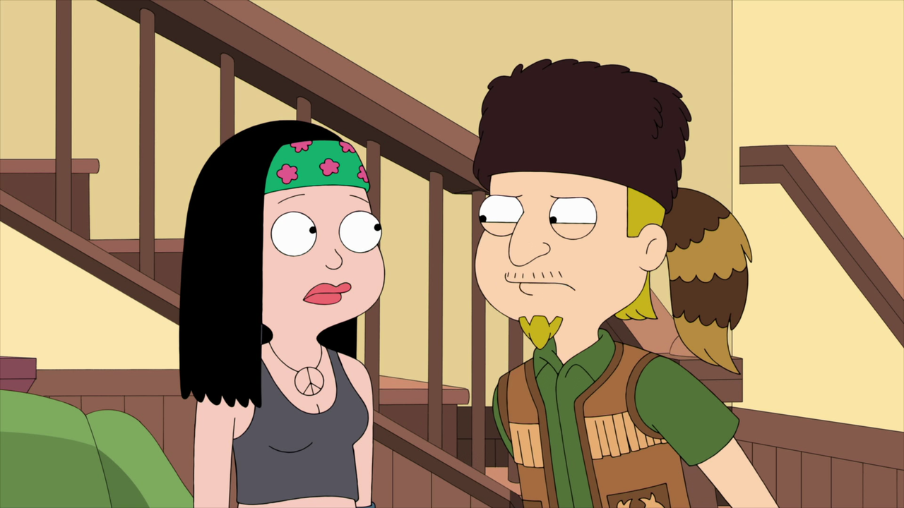 Stan Smith, who works for the CIA and is constantly on the alert for terrorist activity, will go to extremes to protect his beloved America from harm; as evidenced by the terror-alert color code on his fridge, and his frequent knee-jerk reaction of shooting holes in the toaster whenever the toast pops up. In addition to Stan's wife and teenage children, the Smith household has two rather unconventional members. There's Roger, the sarcastic space alien who rescued Stan from Area 51 who deeply resents the fact that he's not allowed to leave the house, and therefore, has been reduced to drinking wine and smoking cigarettes, and Klaus, a lascivious, German-speaking goldfish; the result of a CIA experiment gone seriously wrong where the CIA tried to give a fish a German man's brain. Stan's son is a dorky teenager who tries to be cool. His wife has had a past life of sex and drugs.