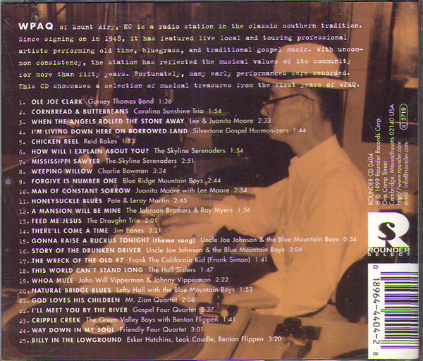 WPAQ of Mount Airy, NC is a radio station in the classic southern tradition. Since signing on in 1948, it has featured live local and touring professional artists performing old time, bluegrass, and traditional gospel music. With uncommon consistency, the station has reflected the musical values of its community for more than fifty years. Fortunately, many early performances were recorded. This album showcases a selection of musical treasures from the first years of WPAQ.