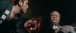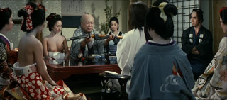 In PORNO PERIOD DRAMA, Tetsuro Tanba plays a nihilistic ronin who faces down the "Clan of the Forgotten Eight", who got their name because they lost all their basic emotions like conscience, gratitude, loyalty, shame etc. With his sword Onibouchou (literally: Ogre's Kitchen Knife!) Tanba's character hacks into their ranks in ways that has limbs and severed heads fly everywhere and the blood flows in rivers! On his way, he only stops to take every woman he meets, forcefully if need be!